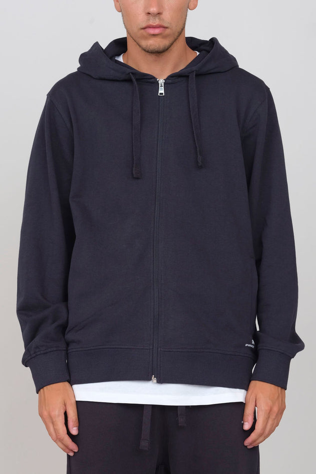 Casual organic cotton zip-up hoodie with side pockets and ribbed hem and cuffs.