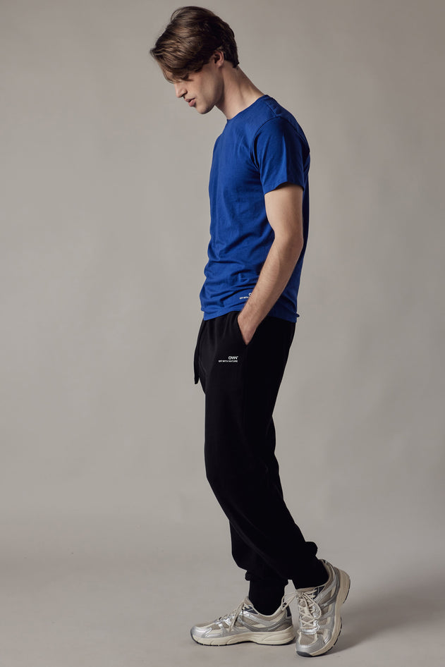 Sweat joggers with side pockets. Ribbed waistband and cuffs. Certified and made of high quality organic cotton.