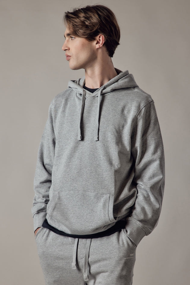 Brushed hoodie with kangaroo pocket, ribbed bottom and cuffs. Certified and made of high quality organic cotton.