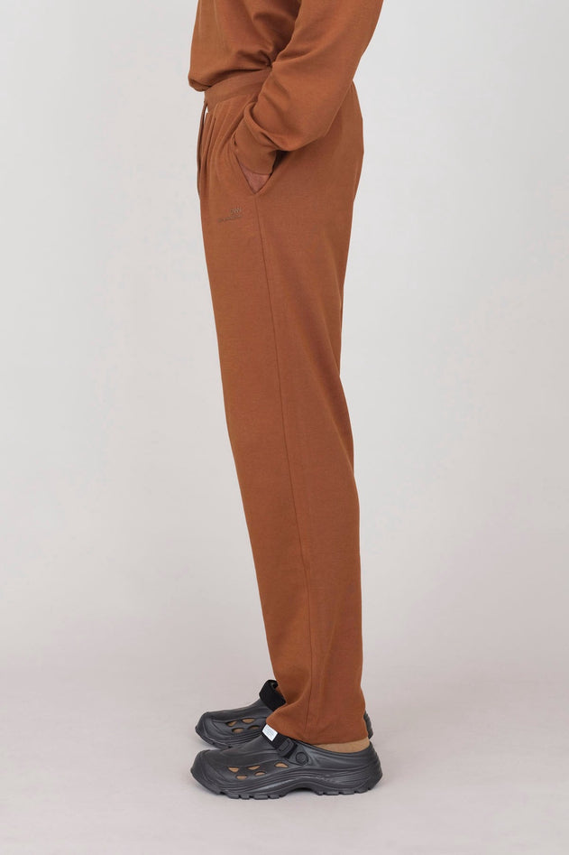 Stretch interlock joggers with pleats and side pockets. Certified and made of high quality organic cotton.