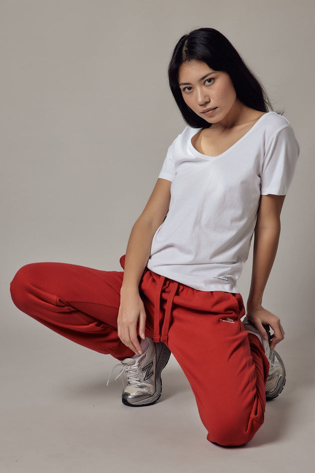 Sweat joggers with side pockets. Ribbed waistband and cuffs. Certified and made of high quality organic cotton.