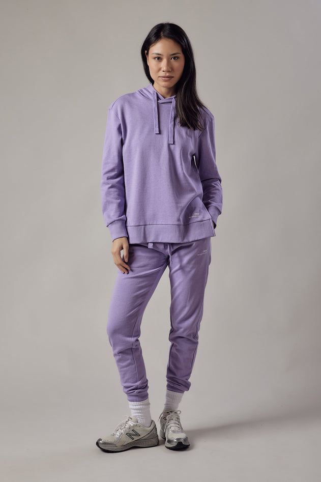 Fleece hoodie, side slits, ribbed bottom and cuffs. Certified and made of high quality organic cotton.