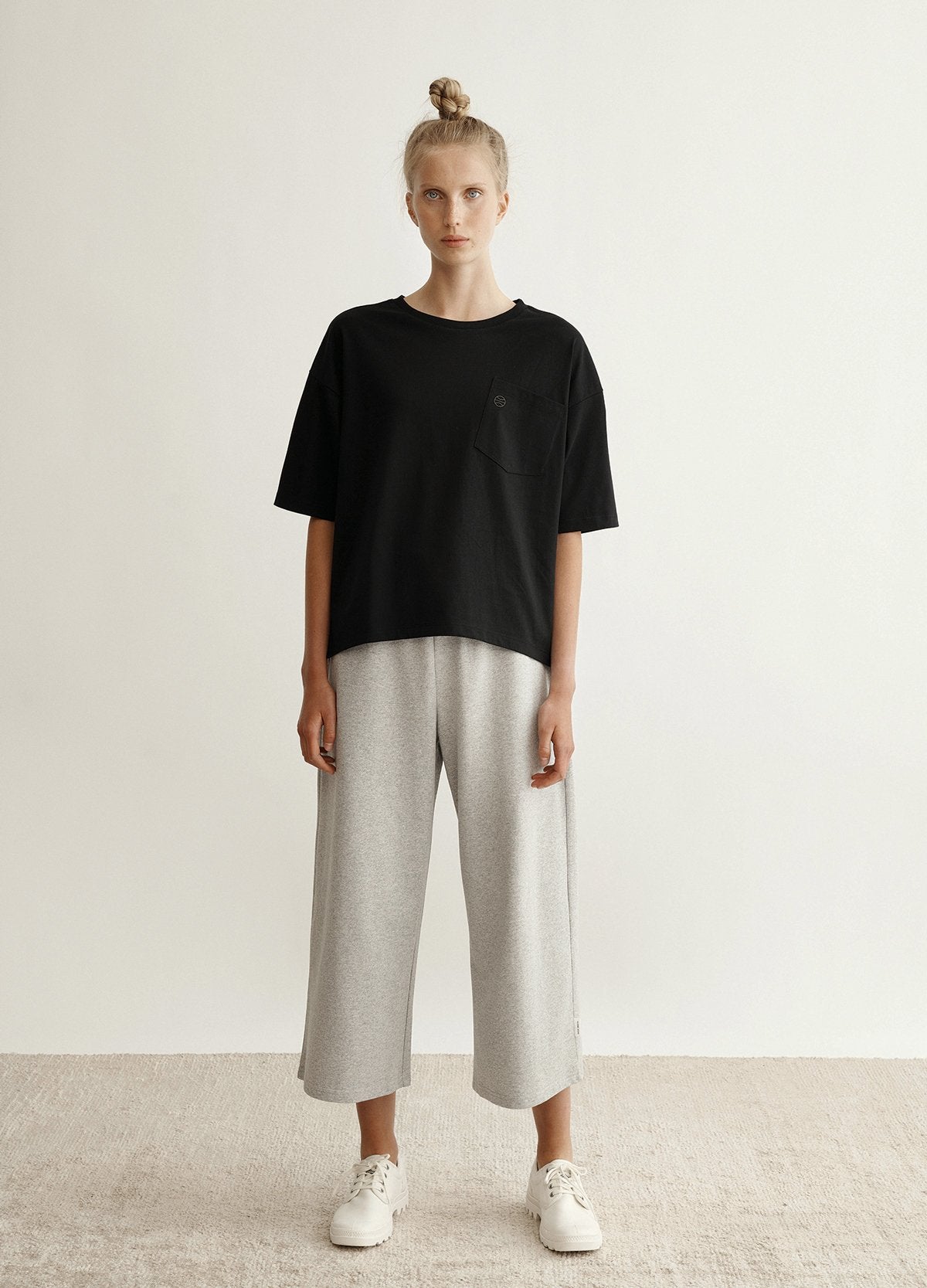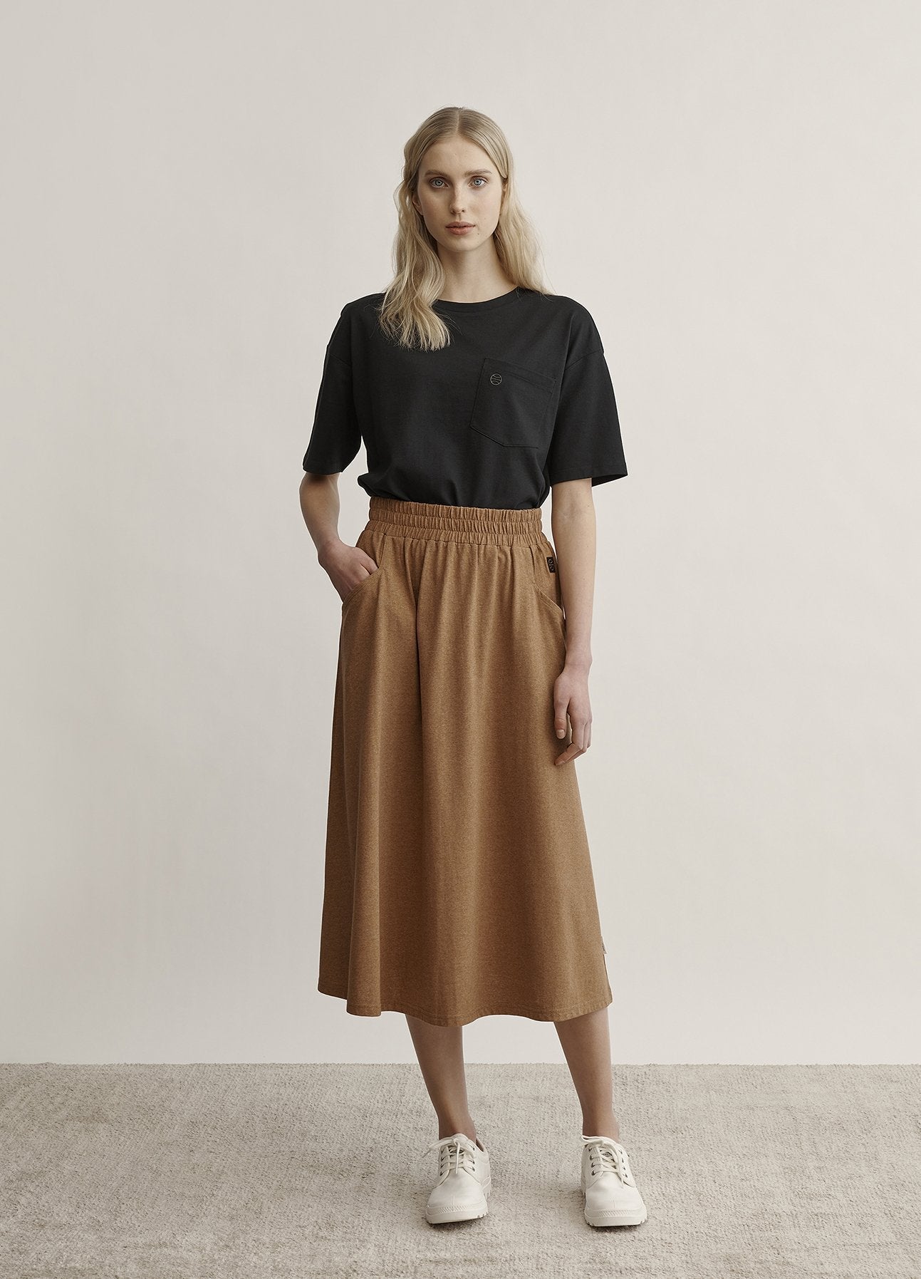 Women’s POHJATAR culotte pants with elastic waist and side pockets. These comfy pants are made from 100% recycled yarn. No recourses were harmed to make you look good!