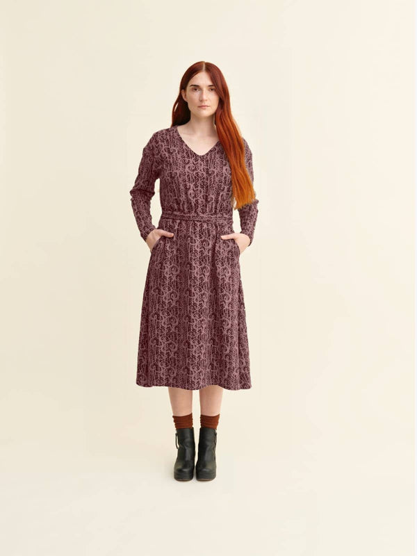 Simuna will charm you with its elegant pink print, which creates a stunning combination with the dark base colour of the dress and instantly puts it at the top of your favourites list. The long sleeves will keep you warm and comfortable even in cooler weather, while the waist-hugging belt creates a feminine and flattering silhouette. The dress extends down to the calf, making it the perfect choice for a variety of occasions.