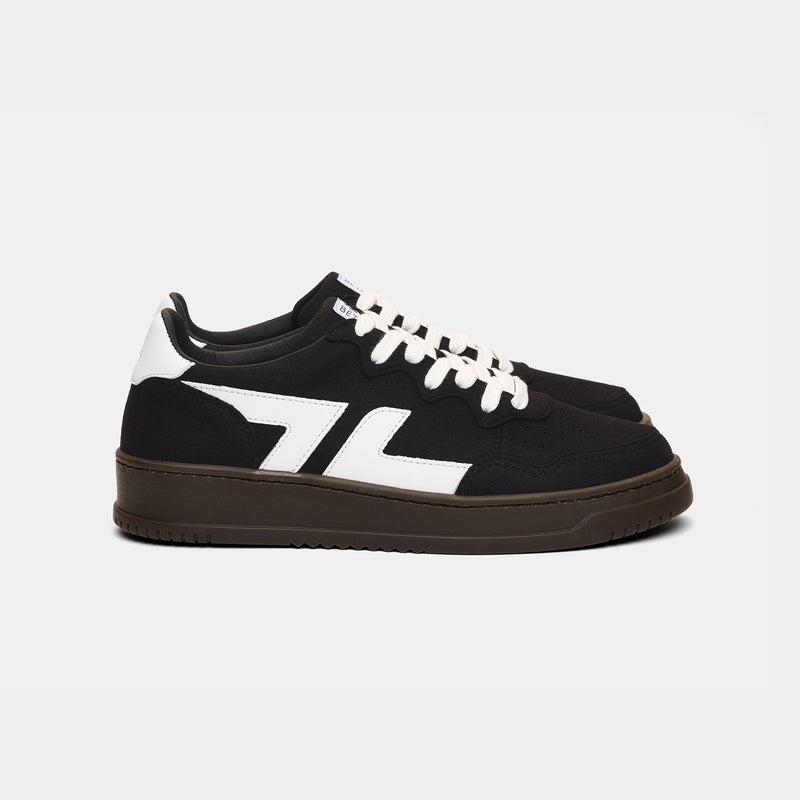 Exterior material in vegan suede (50% PU + 50% nylon) / Inner lining recycled cotton (80%) + PES (20%) / Laces : recycled cotton (100%) / Removable recycled foam insole (100%) / Recycled synthetic rubber outsole (40%)