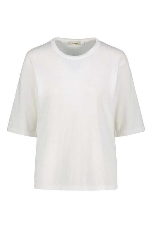 This new T-shirt from niinmun's Airisto collection is knitted with luxuriously soft and light organic cotton. The beautiful boxy straight model has slightly longer T-shirt sleeves. Driftwood is a beautiful soft broken putty in tone.