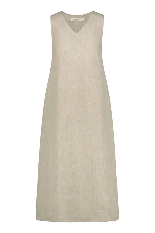 The Sandholm linen dress is a beloved Niinmun classic that has returned to the collection. Timeless, feminine, and stylish, it features a graceful V-neckline and discreet side seam pockets that add a touch of practicality. The silhouette is lightly A line and elegantly straight, finished with a trendy midi length.