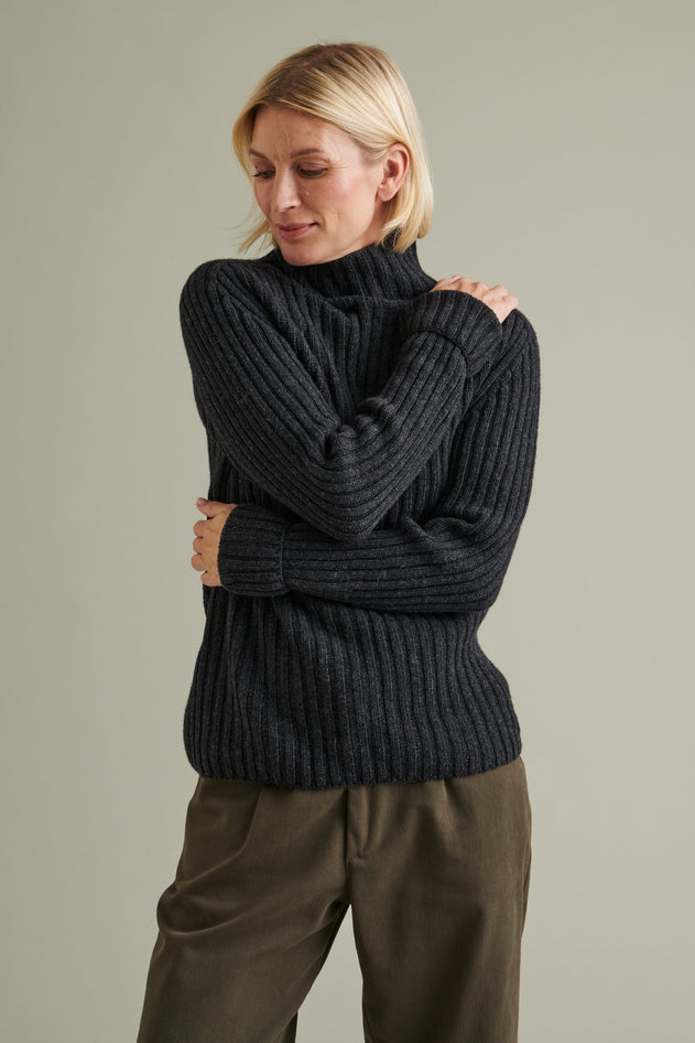 Utö wool sweater is a modern version of traditional archipelago knitwear. The delightful detail of the sweater is the shoulder line, which continues from the sleeve straight to the stand-up collar. The stand-up collar is 8cm tall. The fit is straight, and the length is ideal, avoiding widening at the hips. There are no separate ribbed cuffs or hem. The sleeve is intentionally long; by rolling up the sleeve, you add structure to the sweater while the long sleeve provides warmth.