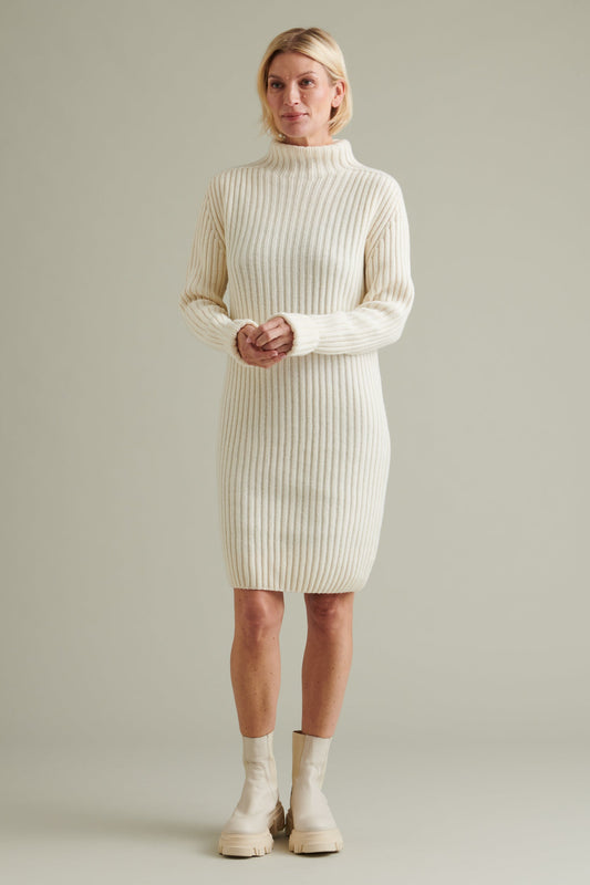 The Utö long wool knit is a stylish and relaxed sweater dress that is wonderfully warm. It reaches to the knee. A beautiful detail is the shoulder line, which continues seamlessly from the sleeve to the neckline. This classic wool knit is stylish when paired with straight trousers or jeans as well as with tights as a dress.