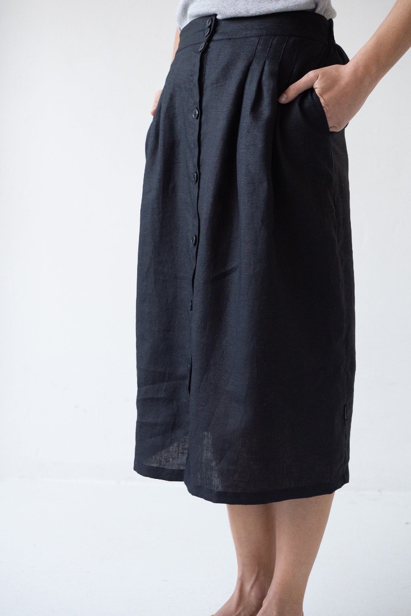 The Bernadette Linen Skirt Beige is a versatile addition to any wardrobe. Made with high-quality linen, it offers a lightweight and breathable option for warm weather. The elastic band allows for a comfortable and adjustable fit, while the midi length provides a classic and elegant style. Perfect for any occasion, this skirt is a must-have for all fashion-forward individuals.