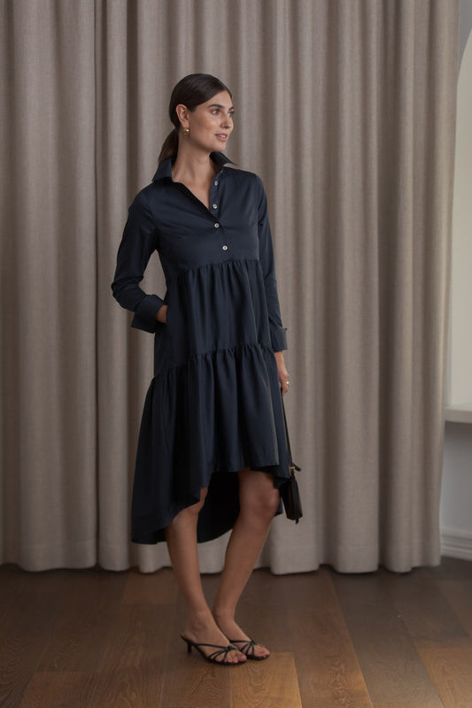 Clarette Long Sleeve Cotton Blend Dress Dark Navy
