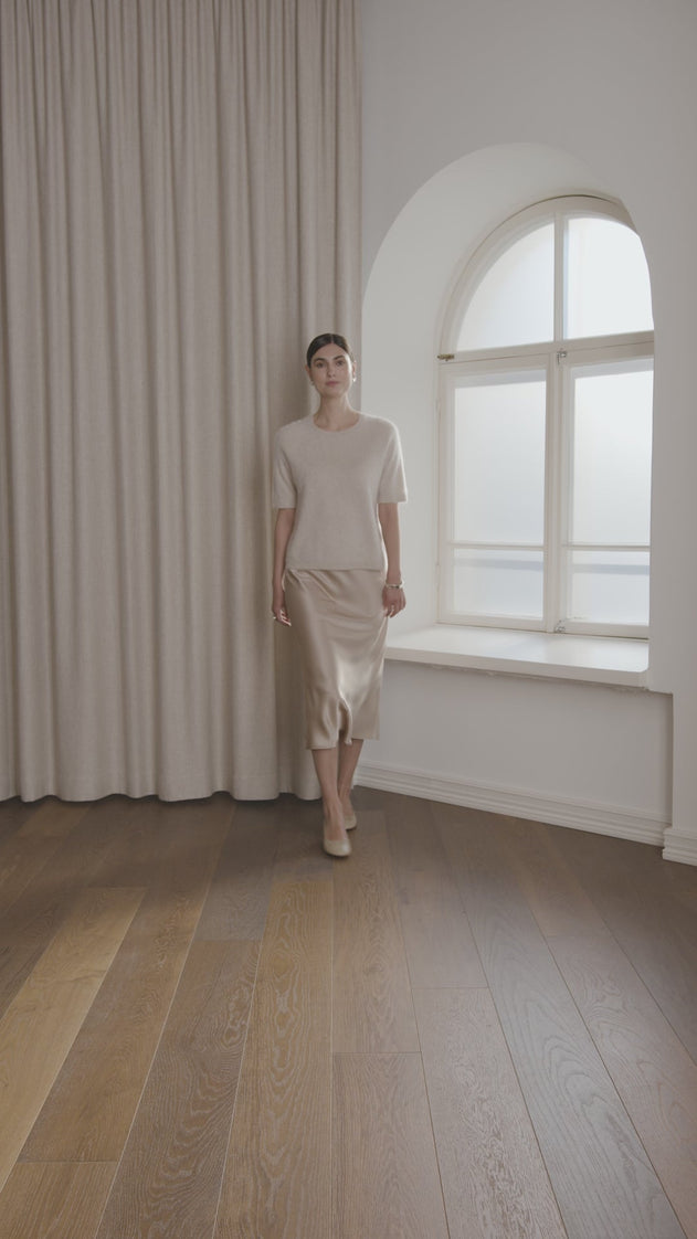The cashmere short-sleeved sweater combines luxury and comfort. The classic O-neck, raglan sleeve fit and straight cut adapt perfectly to many body sizes and shapes. Narrow turn-ups at the cuffs and hem complete the look. The soft, brushed cashmere feels especially pleasant on the skin and is perfect for everyday wear or more formal occasions.