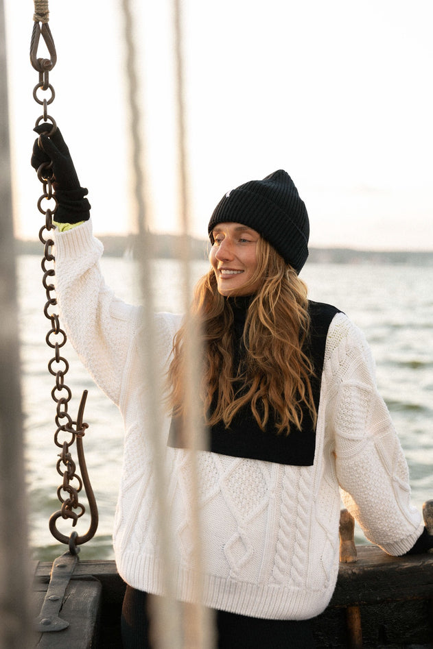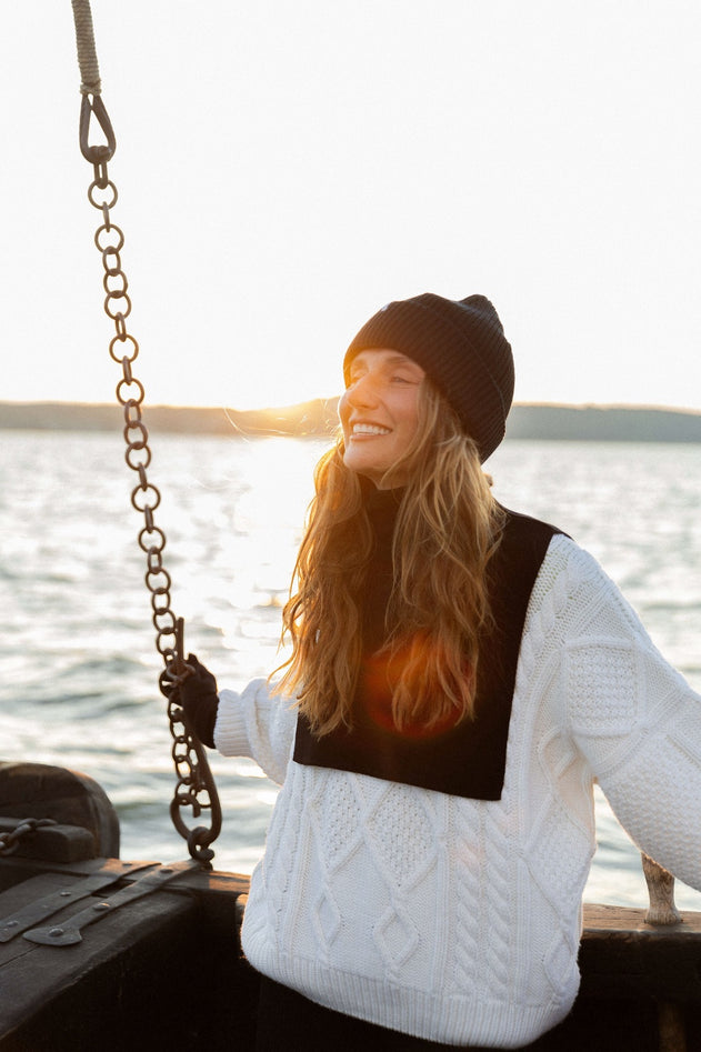 As the temperature drops, you may find yourself in need of an extra layer of warmth. The Punto bib neck is expertly spun from 100% extra fine merino wool, providing a soft and cozy feel that will keep you comfortable throughout the colder days.