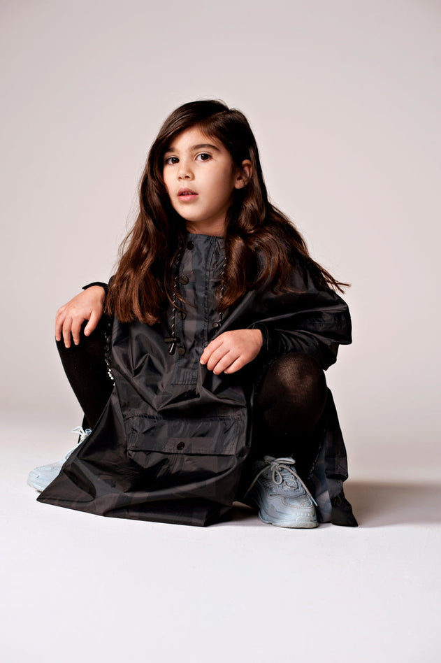 When all black is everything, the Back to Black rain poncho has got your back. This abstract ton sur ton print is sophisticated, clean and always looks good. Stay mysterious, stay dry.