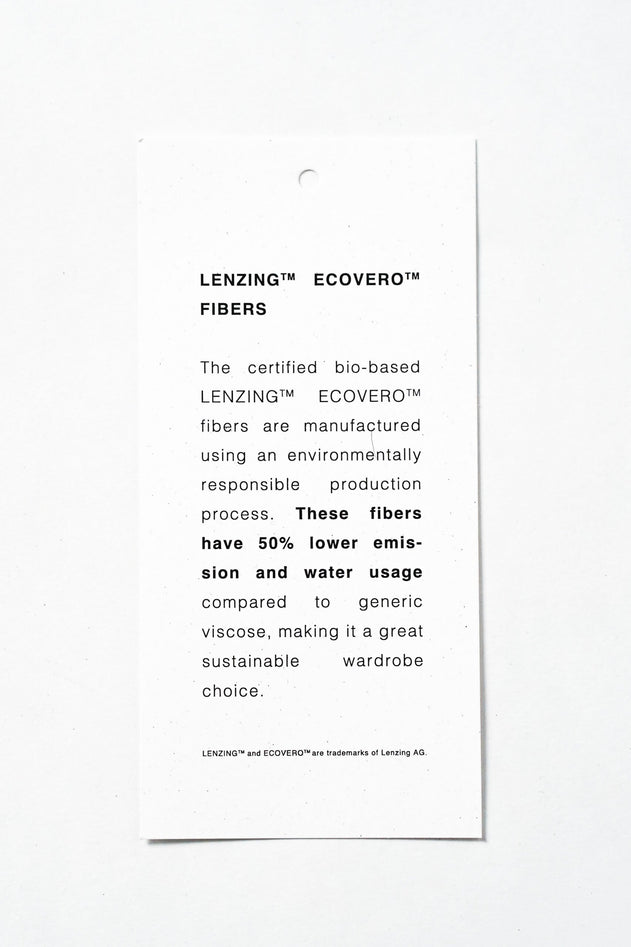 The certified LENZINGTM ECOVEROTM fibers are manufactured using an environmentally responsible production process. The fibers have 50% lower emission and water usage compared to generic viscose, making it a great sustainable wardrobe choice. LENZINGTM and ECOVEROTM are trademarks of Lenzing AG.