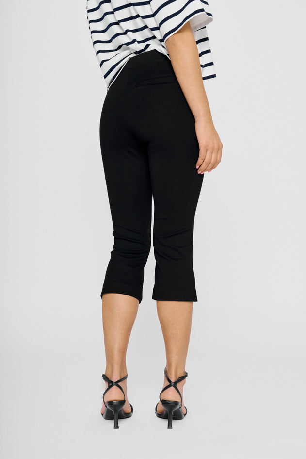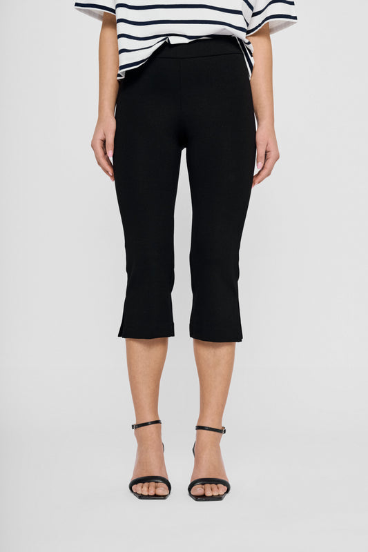 These black Capri Pants feature a clean and cropped design with a comfortable elastic waistband. Made in RESIDUS' signature heavy jersey stretch material. The side seam slit adds ease of movement and elegance, and the pants have a back welt pocket detail.