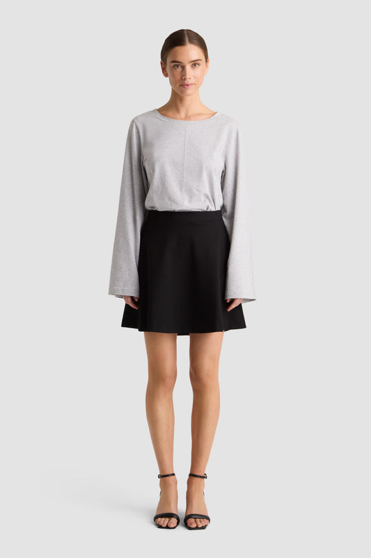 Elvie Skirt in Black offers a sophisticated take on the feminine mini skirt with its wide, voluminous cut that drapes elegantly for a flattering silhouette. Designed with practical side seam pockets, it seamlessly combines style and functionality. This skirt’s flirty shape enhances movement while maintaining a polished, expert finish suitable for versatile occasions.