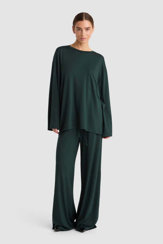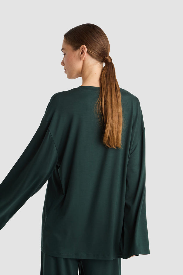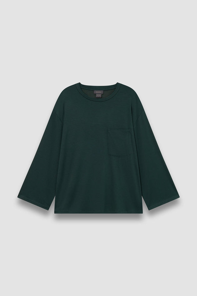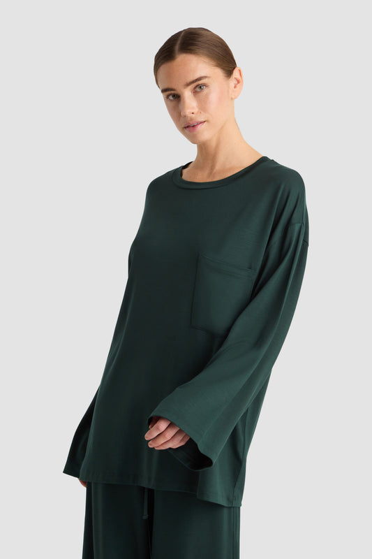The Goma Top in Bottle is a relaxed-fit garment designed for comfort and style. It features a straight cut with long sleeves and a rounded neckline, offering a clean and versatile silhouette. A practical chest pocket adds subtle detail, making it suitable for both casual and refined looks. Crafted to provide ease of movement, this top is an expert choice for those seeking understated elegance in their wardrobe.
