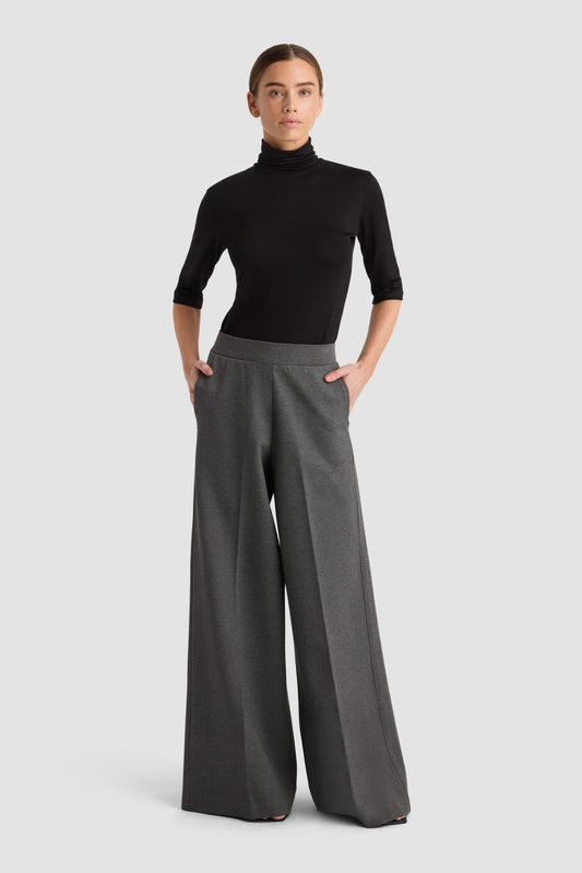 These Luna Pants in Graphite Melange feature an 81 cm inseam in size S and a comfortable elastic waistband. Crafted from a heavy jersey stretch fabric composed of LENZING™ ECOVERO™ viscose, polyamide, and elastane, they offer both durability and flexibility. Designed to fit true to size, they provide a flattering silhouette while ensuring ease of movement. Ideal for those seeking a blend of comfort and expert tailoring in everyday wear.