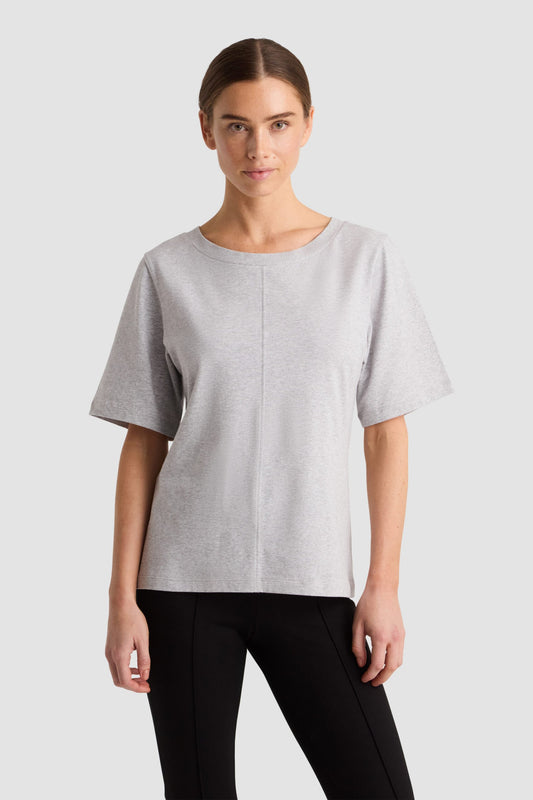 Thea Tee in Grey Melange offers a refined yet relaxed fit with a subtly defined waist that enhances silhouette without compromising comfort. Its elegant tailoring details and rounded neckline provide a sophisticated touch, making it a versatile piece suitable for both casual and polished looks. Crafted to balance style and ease, this tee is an expert choice for those seeking understated elegance in everyday wear.