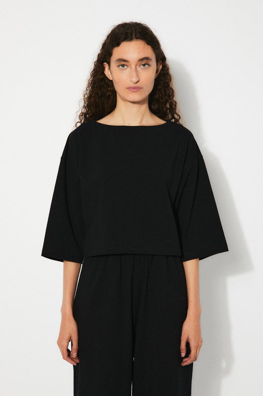 The Pirita top is a basic cotton knit straight top featuring a classic boat neckline. Made from 100% BCI cotton, it offers both comfort and sustainability in a simple, timeless design.