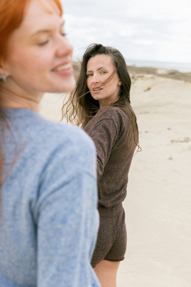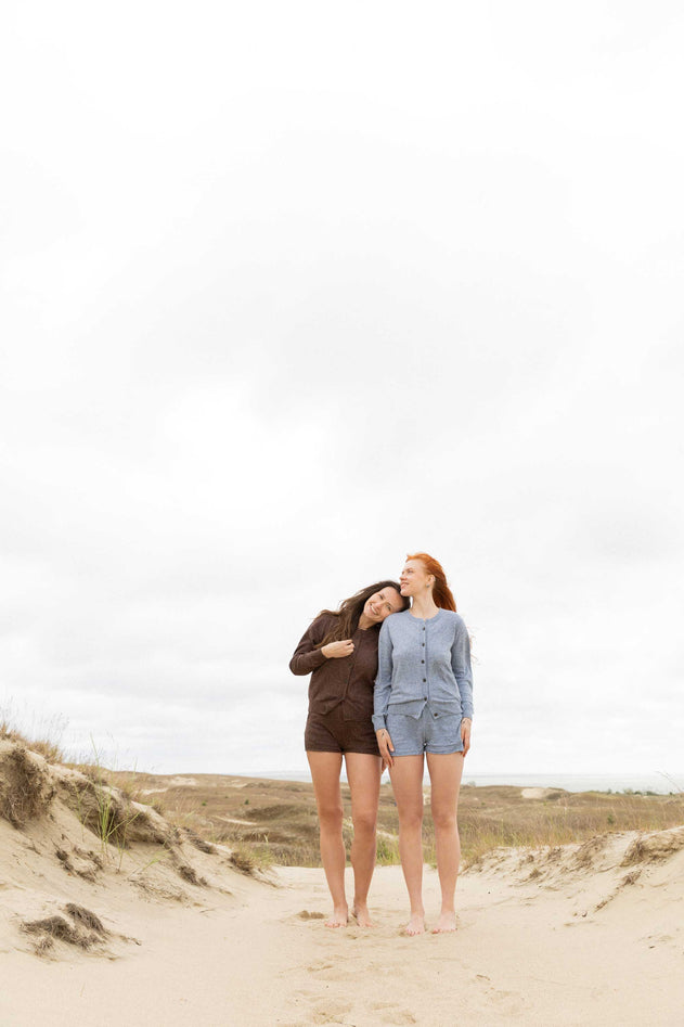 Sabbia cardigan is knitted from a luxurious blend of organic cotton, silk, merino wool and viscose, creating a unique sandy texture. It’s a lightweight knit in a minimal shape with a round neckline and front buttons. Easy to wear daily and perfect for layering.
