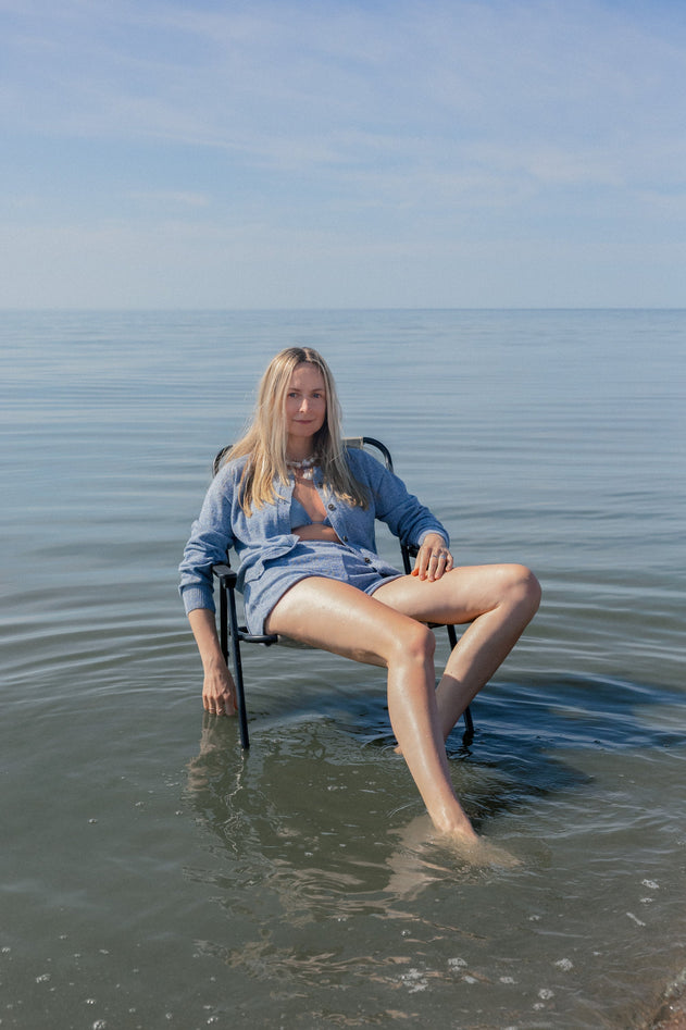 Sabbia cardigan is knitted from a luxurious blend of organic cotton, silk, merino wool and viscose, creating a unique sandy texture. It’s a lightweight knit in a minimal shape with a round neckline and front buttons. Easy to wear daily and perfect for layering.