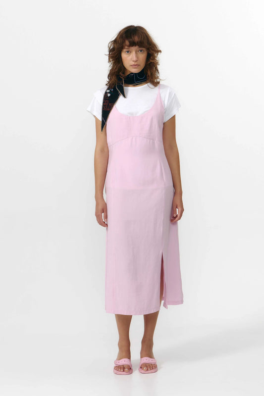 Midi dress with adjustable spaghetti straps and a round neckline. Fastened at the back with a hidden zipper. Comfort and practicality guide the design. A reliable piece that fits right into daily routines.