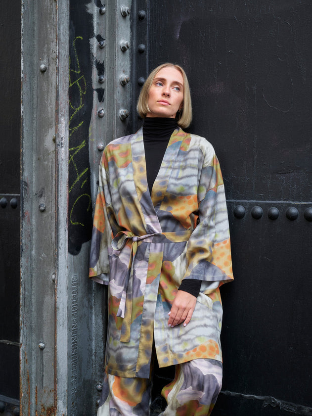 This Saltwater Belt, measuring 200 cm in length and 4 cm in width, is designed to perfectly complement the Saltwater kimono jacket or dress. Featuring the distinctive Saltwater all-over print, it adds a refined touch while allowing you to cinch your outfit for a tailored silhouette. Crafted to enhance both style and fit, this belt is an essential accessory for a cohesive, expert look.