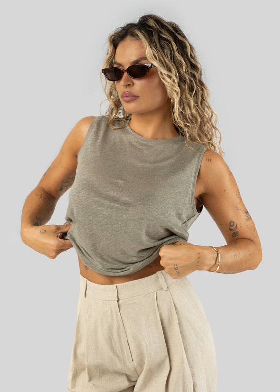 Jimmy Scoop-Neck Ribbed Tank Top Grey