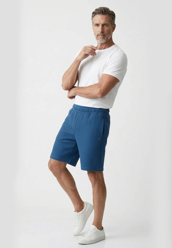 These men’s shorts stand out with their modern, minimalist design and high level of comfort. The waffle texture provides a pleasant feel and good breathability, while the elastic waistband ensures a perfect fit. Ideal for everyday wear, travel, or relaxed casual looks.Material: 53% organic cotton – 46% recycled polyester – 1% elastane