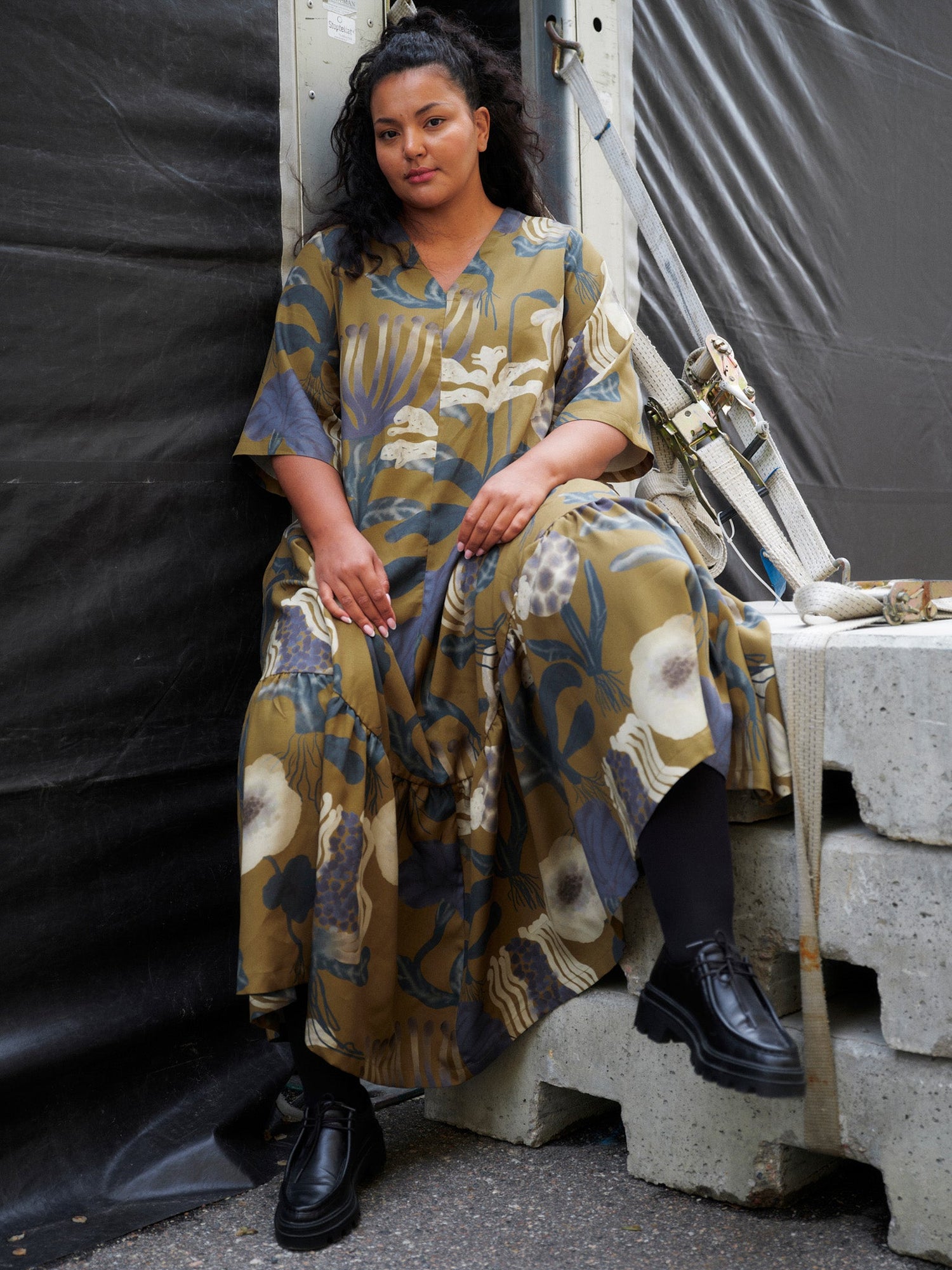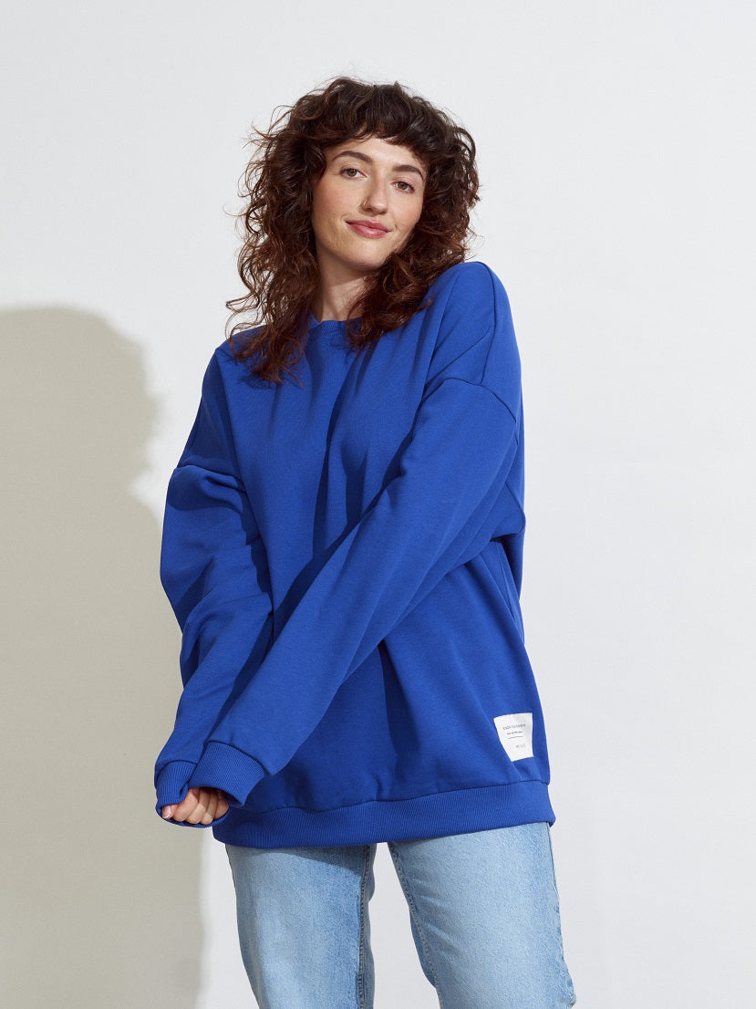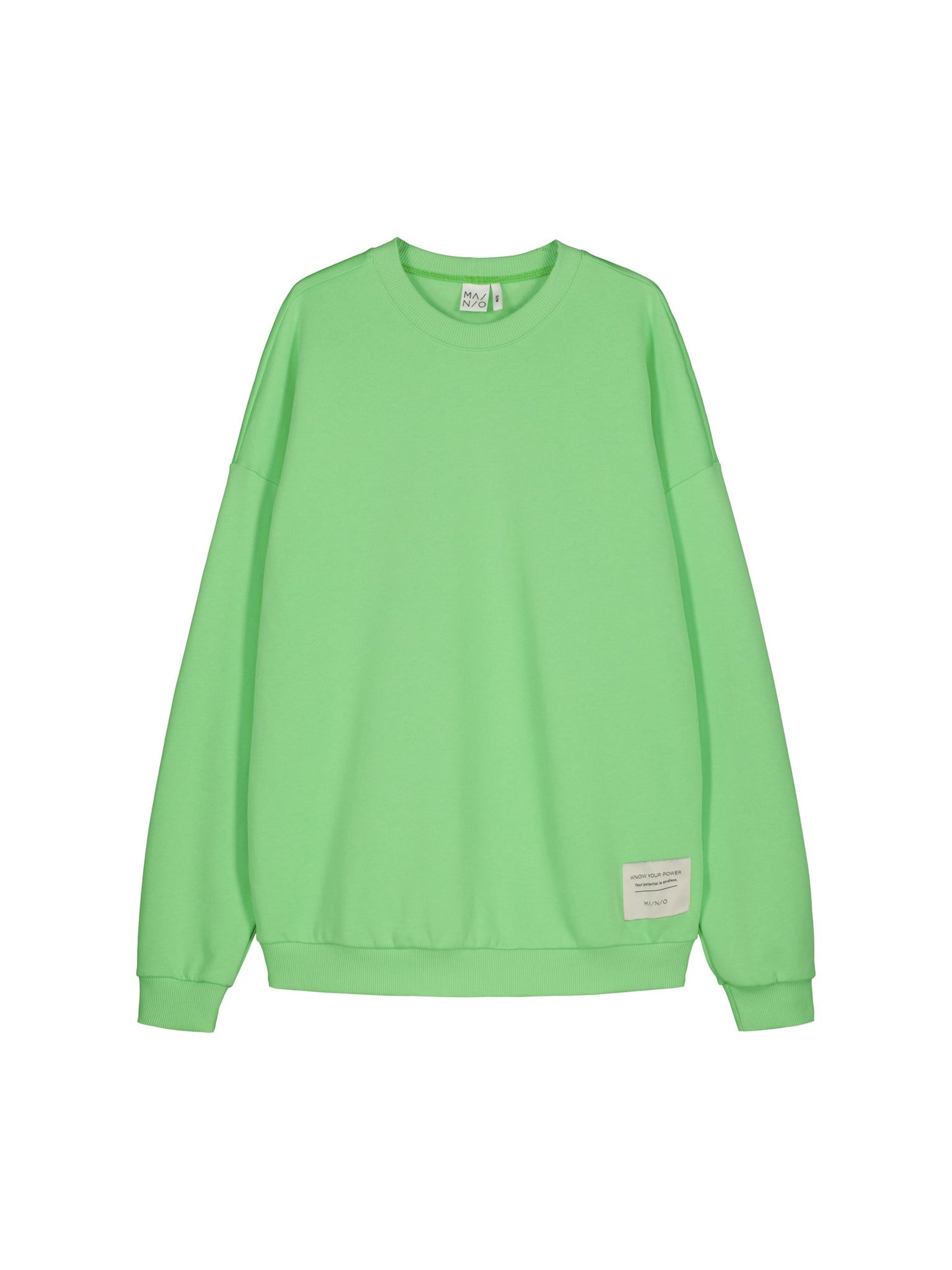 The Superpower Sweatshirt Capers offers an oversized unisex fit, with double sizes aligning to the larger measurement for comfortable layering. Crafted from 100% organic cotton and certified by GOTS, it features a soft brushed interior that ensures lasting comfort. A woven "Know your power" patch on the front adds a subtle statement, blending style with meaning in a sustainably produced garment.