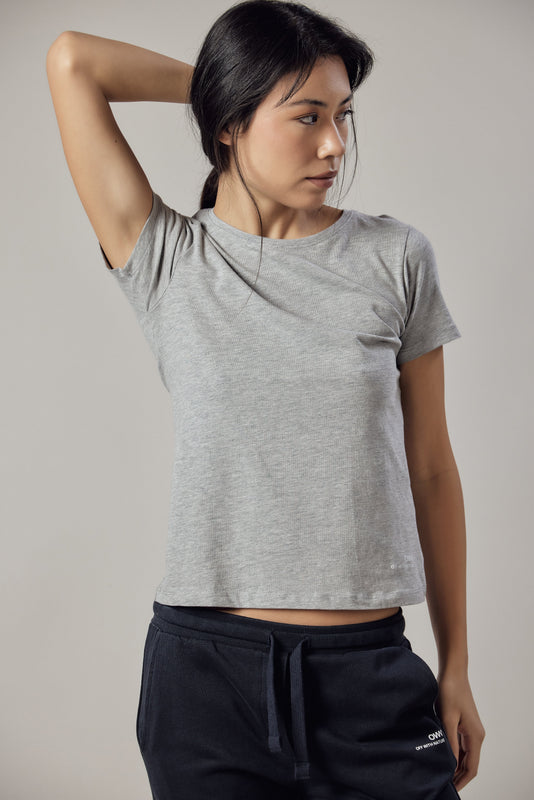 Light Gray Melange: 90% Organic Cotton, 10% Viscose Julia is 176 cm tall and is wearing a size S