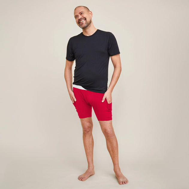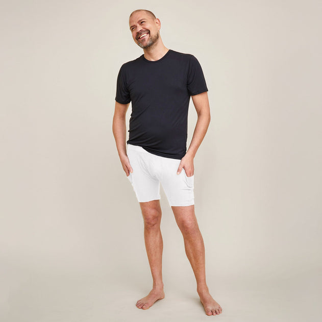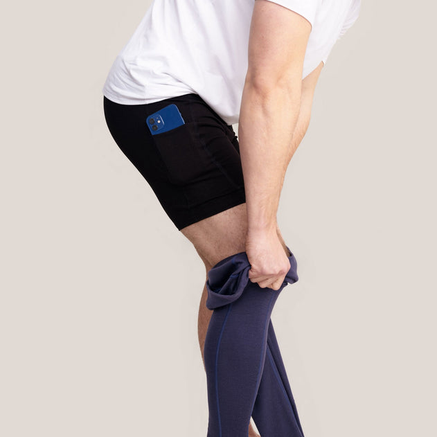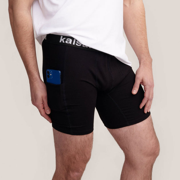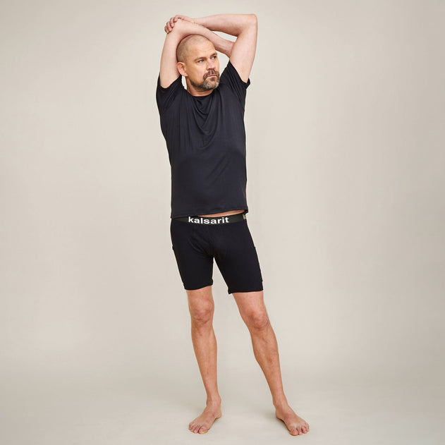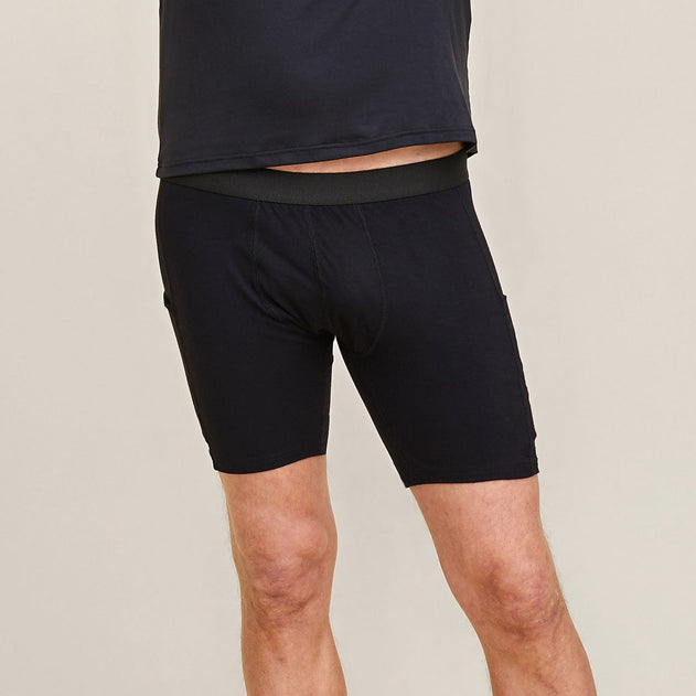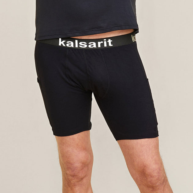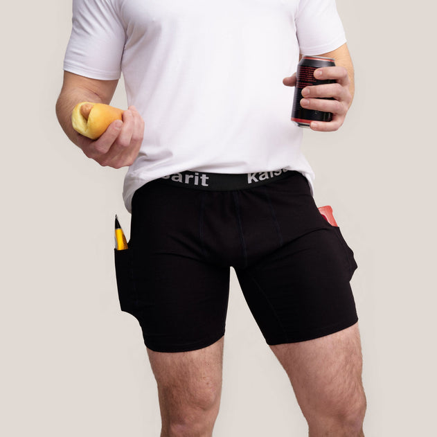 Pocket underwear to assist in everyday life. These mid-thigh length underwear feature pockets on both sides of the thighs, extending down to the legs. Practical underwear for carrying your phone, remote control, a drink, or anything else you can think of when your hands are full. Good cuts, chafe-free and discreet seams ensure perfect comfort. Wear together with a t-shirt or as underwear under long johns.