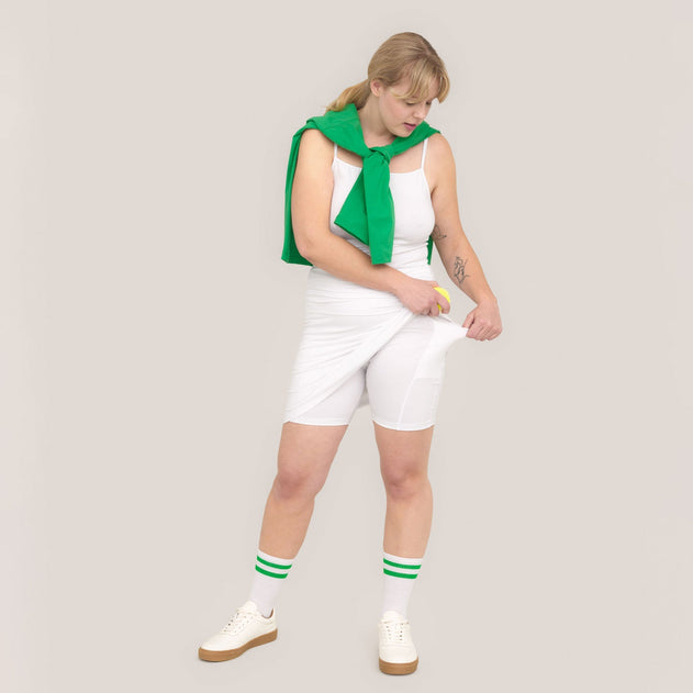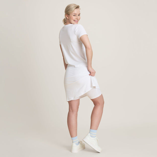 The shorts include practical side pockets for keeping essentials like keys, your phone, or an energy bar close by. Made from breathable materials, the skirt feels soft against the skin and effectively wicks away moisture.