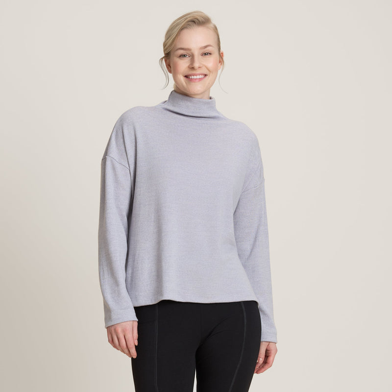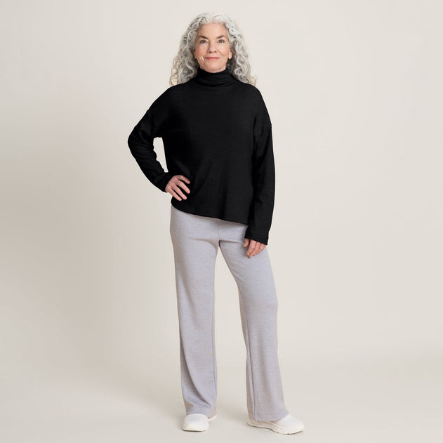 The cozy, loose turtleneck offers a polished look, whether you're at home or at a meeting. Its long sleeves and soft, high collar keep you warm and comfortable without feeling restrictive.