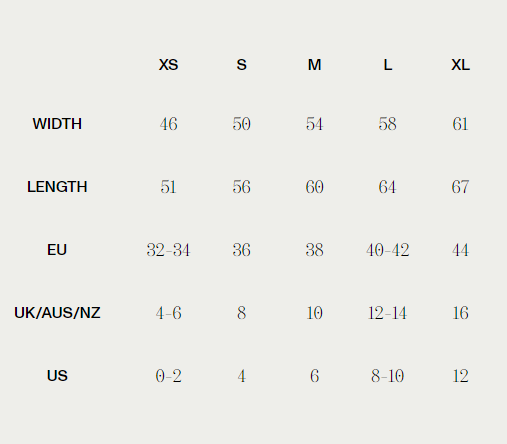 Size Guide - Product Measurements