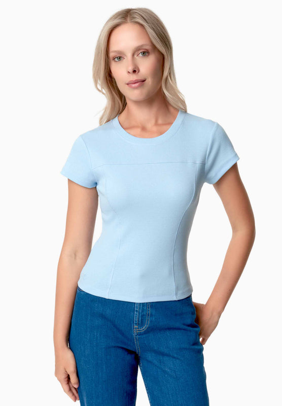 The Tillda Ribbed T-Shirt blends organic cotton, TENCEL™ Modal, and a touch of elastane for a soft, flexible fit that moves with you. Its slim silhouette, classic crew neckline, and subtle logo embroidery at the hem provide a versatile, refined look—ideal for wearing alone or layered under a cardigan. Combining sustainable materials with thoughtful design, this short-sleeved tee offers both comfort and style for everyday wear.