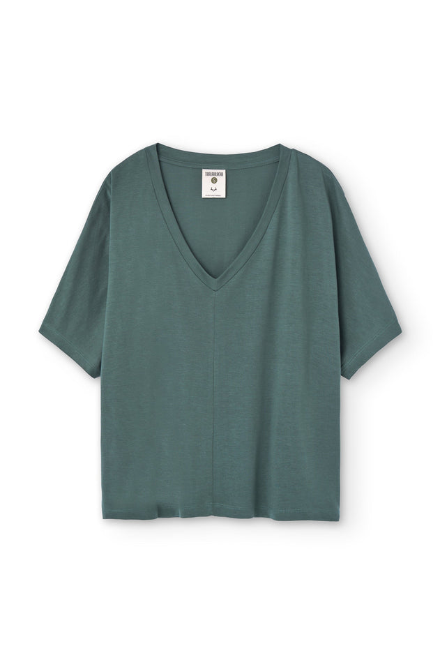 Oversized V-neck T-shirt made of Tencel lyocell. The drop sleeves add a touch of style while the flowy fit provides a flattering silhouette.