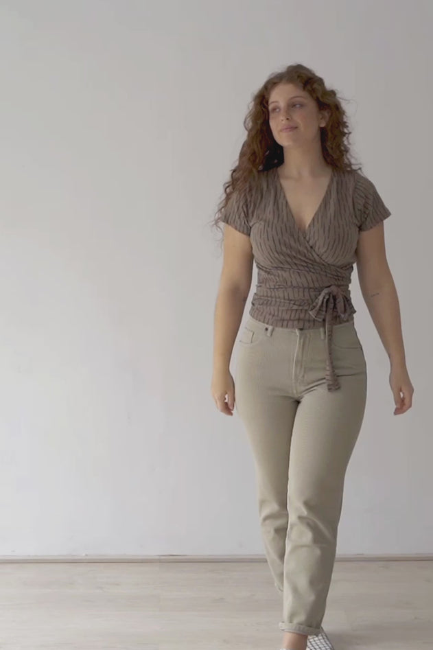 Hagne is that T-shirt that wraps you in a soft, warm hug. It's the perfect garment that you can adapt to your silhouette however you like—adjust the tie or knot in the front, back, or on the side, wear it long to the hips or hike it up to the waist. It's versatility taken to the next level!