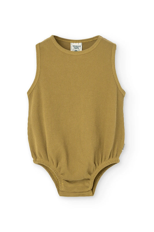 The perfect romper for the summer. Roomy and featuring nickel-free snaps on the shoulder. Crafted from high-quality GOTS organic cotton waffle fabric.