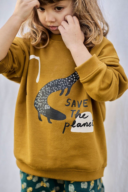 Kids' Unisex Organic Cotton Sweatshirt Crocodile Mustard