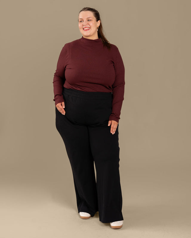 This slim-fitting ribbed turtleneck features long sleeves and is crafted from a stretchy, breathable fabric for all-day comfort. Its elegant burgundy shade adds a refined touch to your wardrobe while ensuring a flattering silhouette. Perfect for layering or wearing on its own, this piece combines style and practicality with ease.