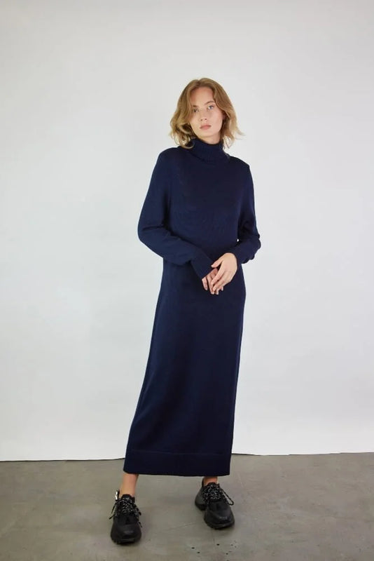 Turtleneck Sweater Dress Dark Blue