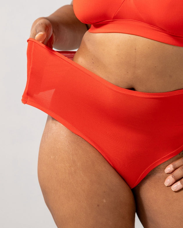 Mesh Bikini Briefs Pale Pink/Deep Red