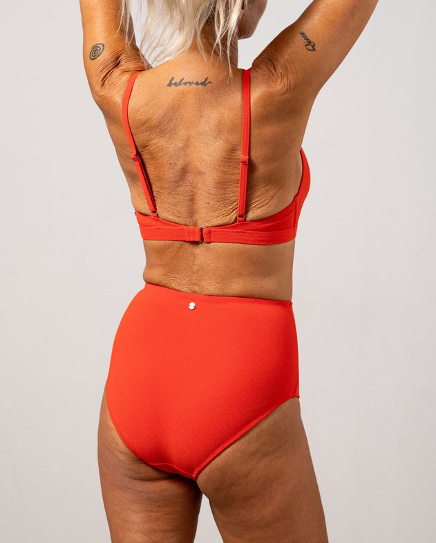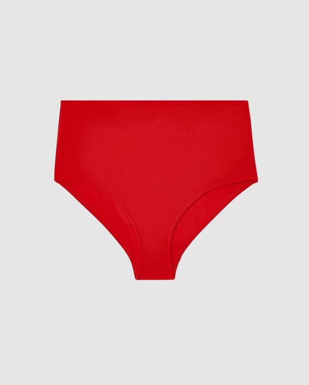 Full-bum coverage. Full-on comfort. High-rise bikini briefs with flattering full coverage at back side. Barely there, hidden elastic waistband. Metal coin with Understatement symbol at back.