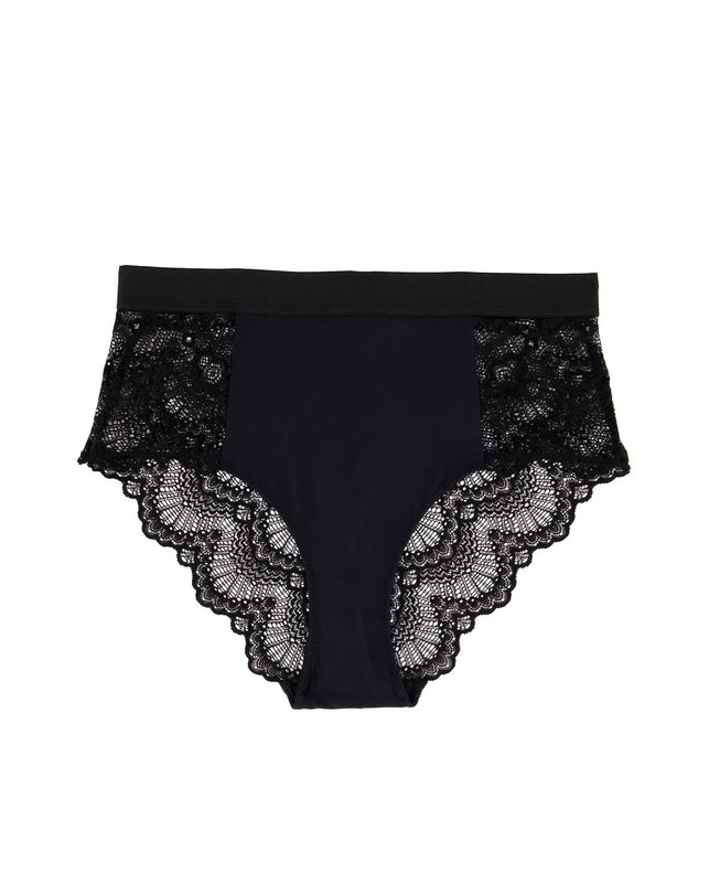 Undestatement's iconic Saboteur Highwaist Briefs combine an amazing highwaist fit with delicate Feather Lace, recycled microfiber, and our favorite Japanese elastic waistband for an absolute winning pair of panties.