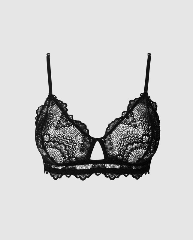 Lace Cut-Out Triangle Bralette Black