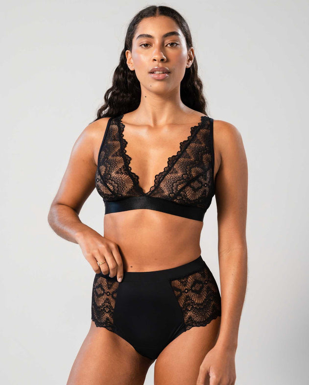 She's got the look. And the absorbency. 4-layered gusset for absorption of up to 5 tampons worth of menstrual fluid.