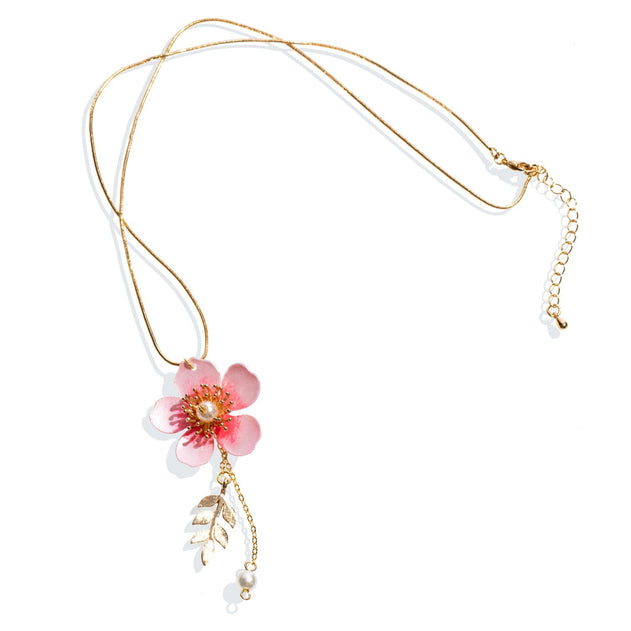 Delicate and lightweight necklace with a pink cherry blossom pendant.
